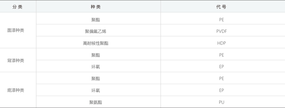 建筑类彩板涂料种类及代号